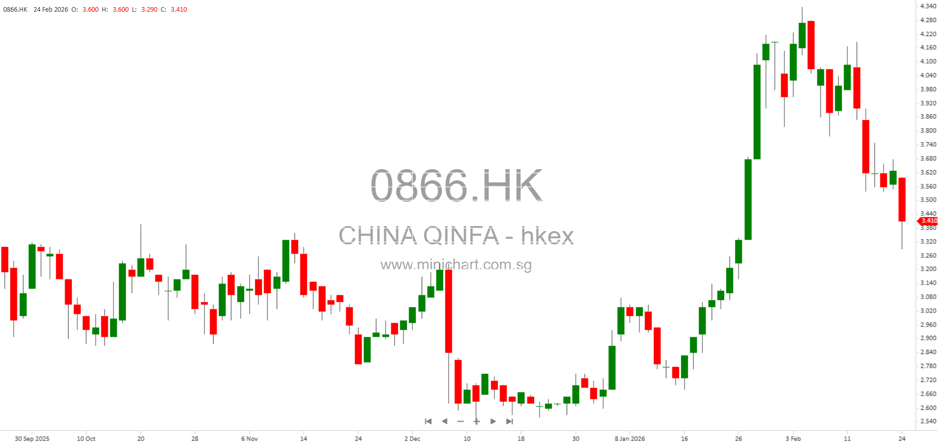 View CHINA QINFA Historical chart here