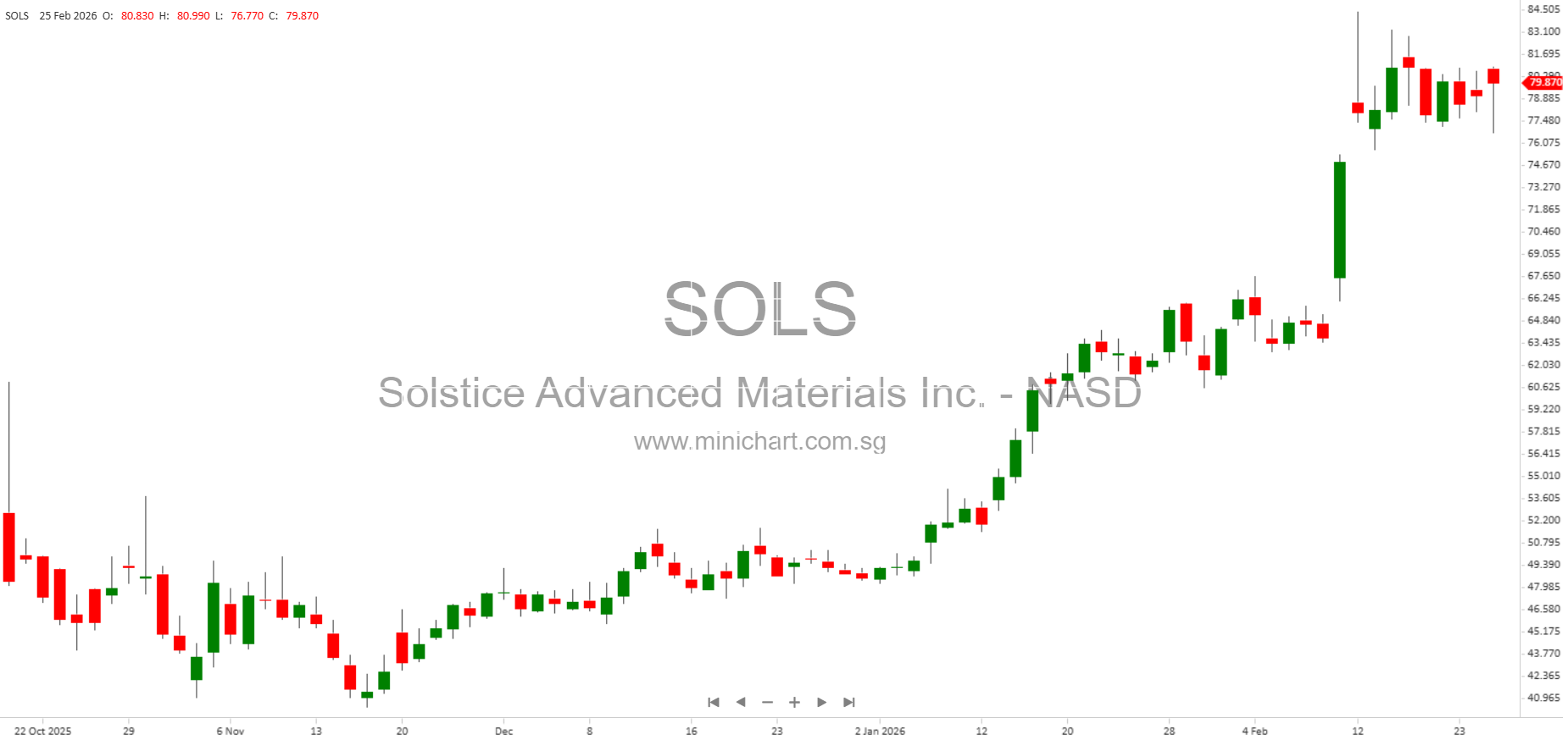 Common stock trades on NASDAQ under the symbol SOLS.