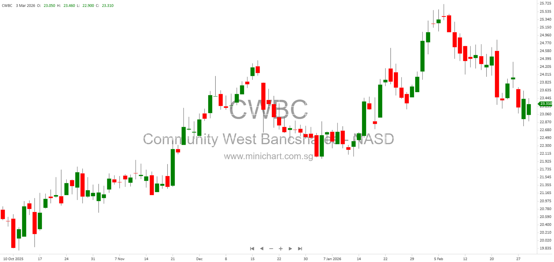 View Community West Bancshares Historical chart here