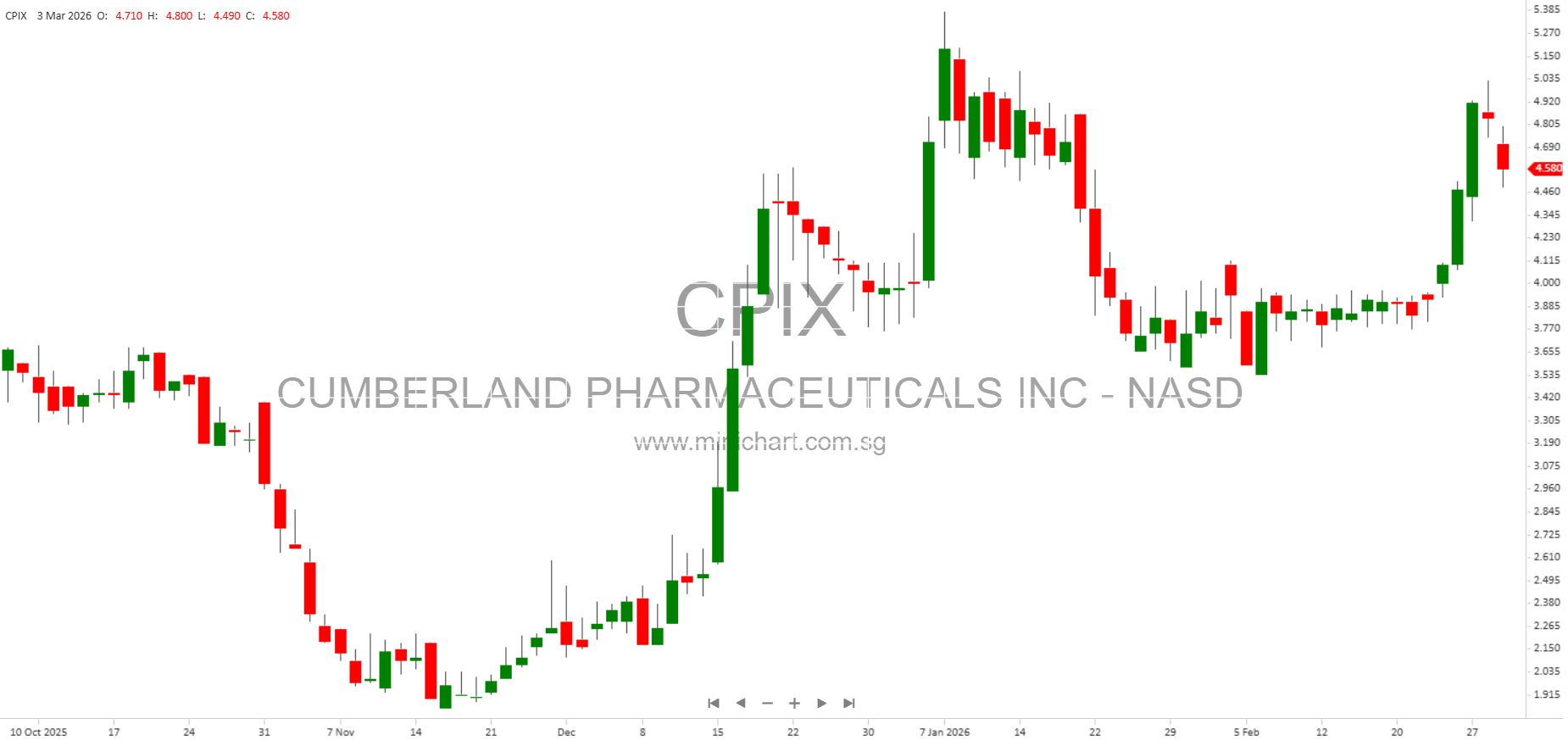 View CUMBERLAND PHARMACEUTICALS INC Historical chart here