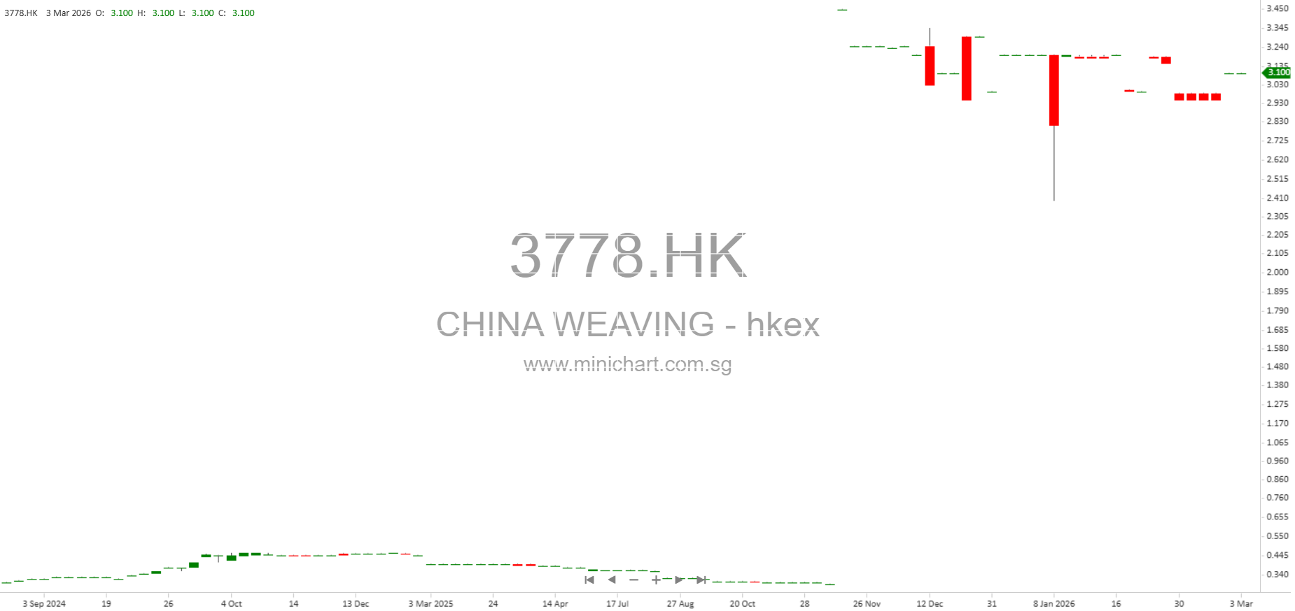 View CHINA WEAVING Historical chart here