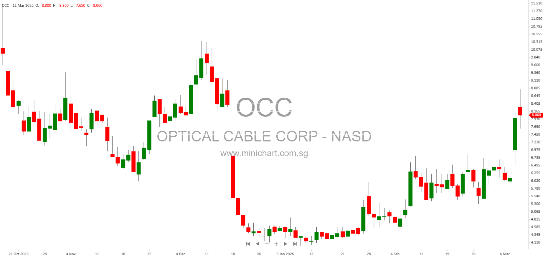 View OPTICAL CABLE CORP Historical chart here