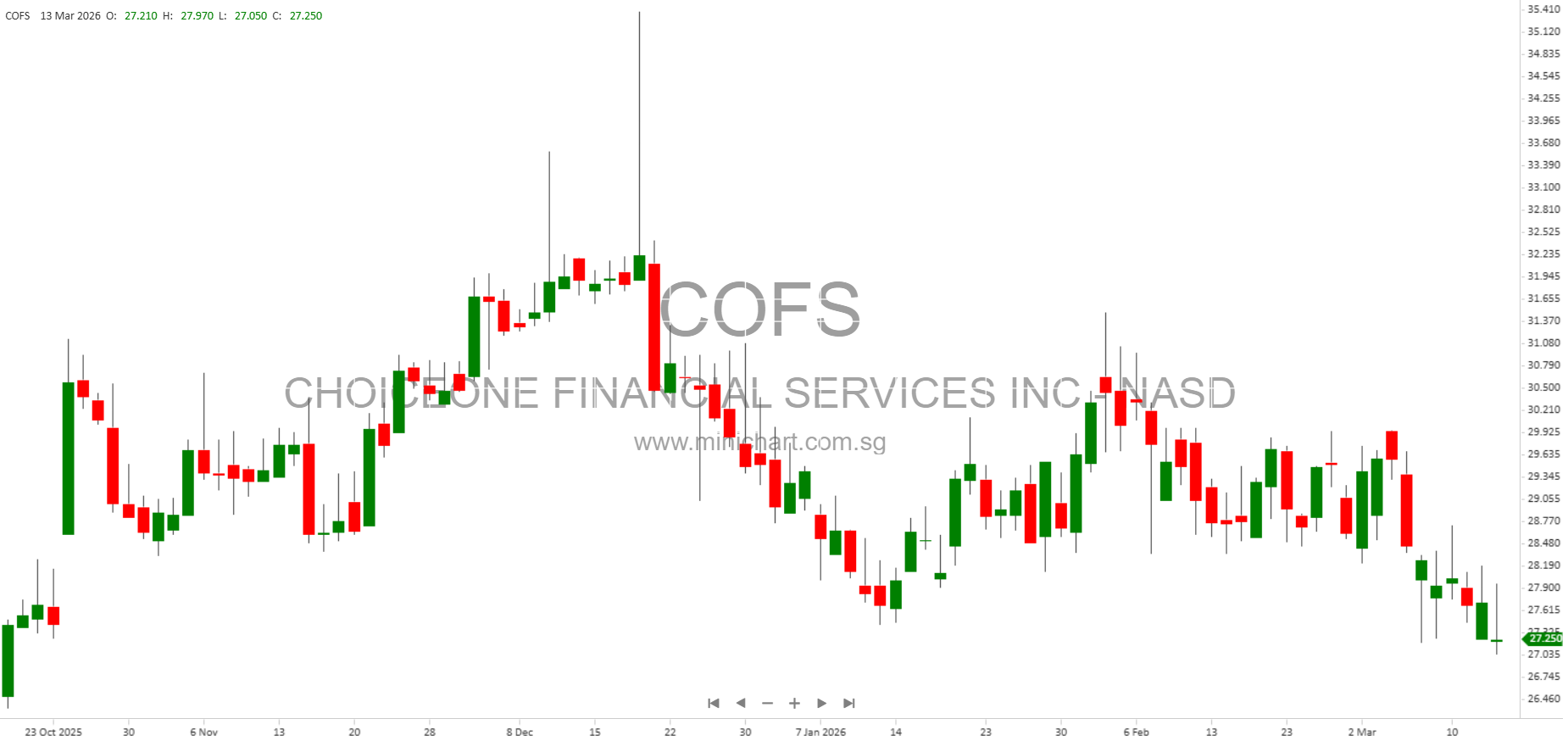 View CHOICEONE FINANCIAL SERVICES INC Historical chart here