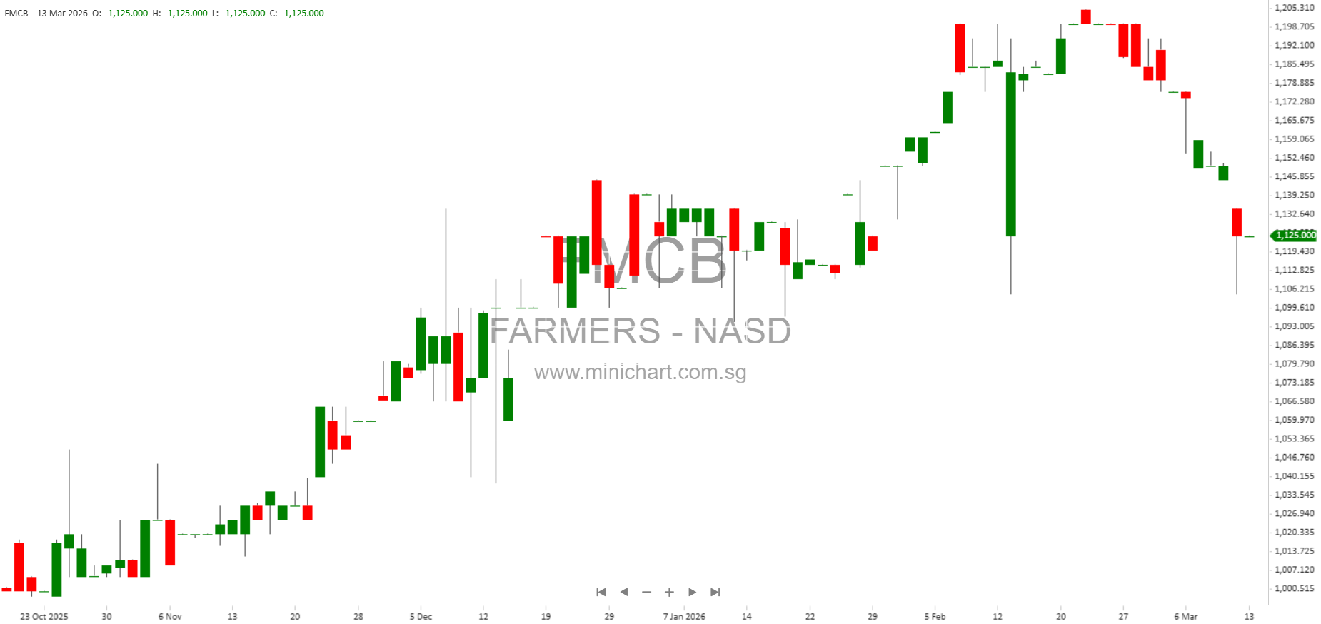 • Market Listing: The company’s common stock is not listed on a national exchange but is traded on the OTCQX under the symbol “FMCB.” The stock is relatively illiquid, which can result in significant price fluctuations.