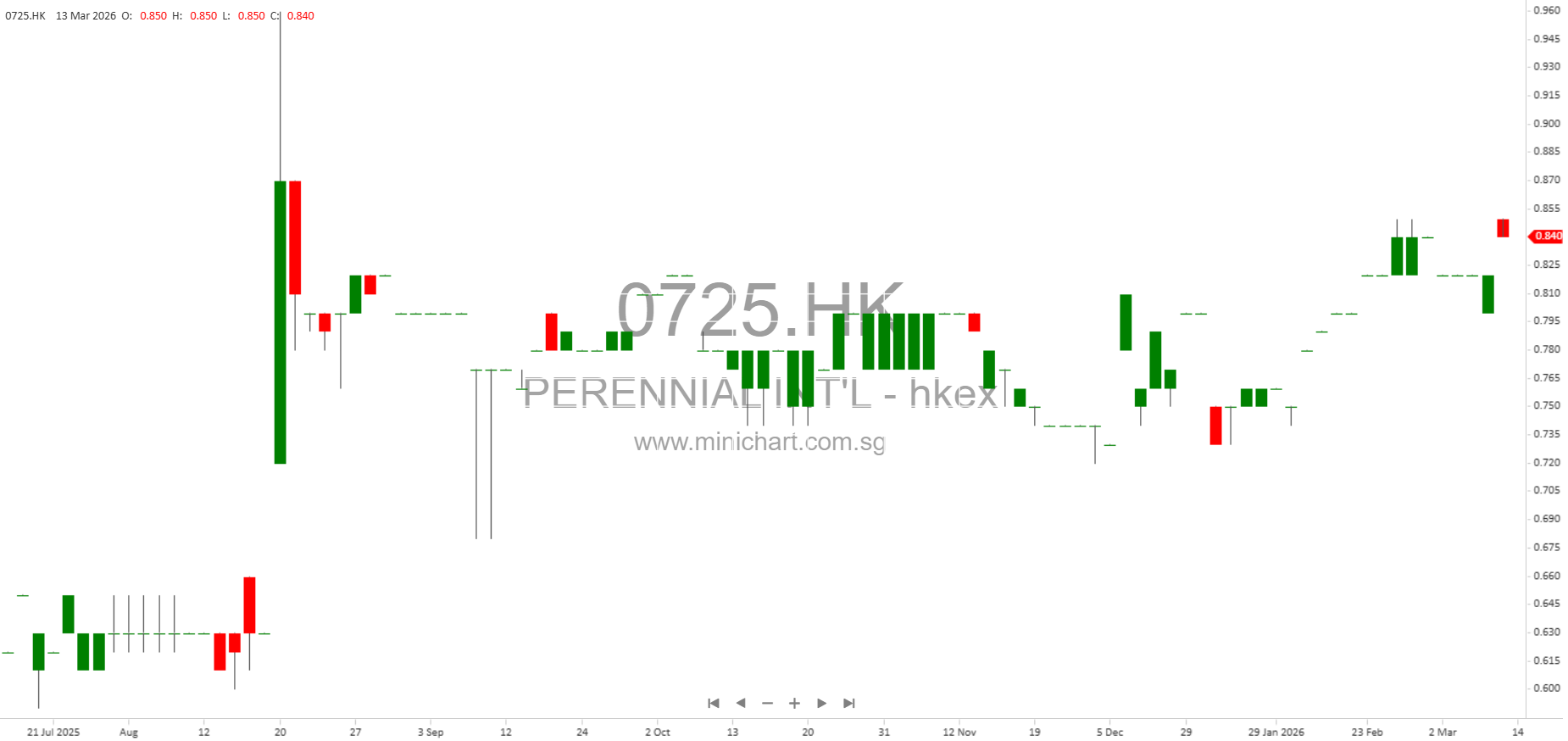 View PERENNIAL INT’L Historical chart here