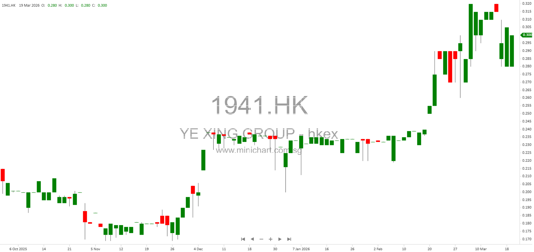View YE XING GROUP Historical chart here