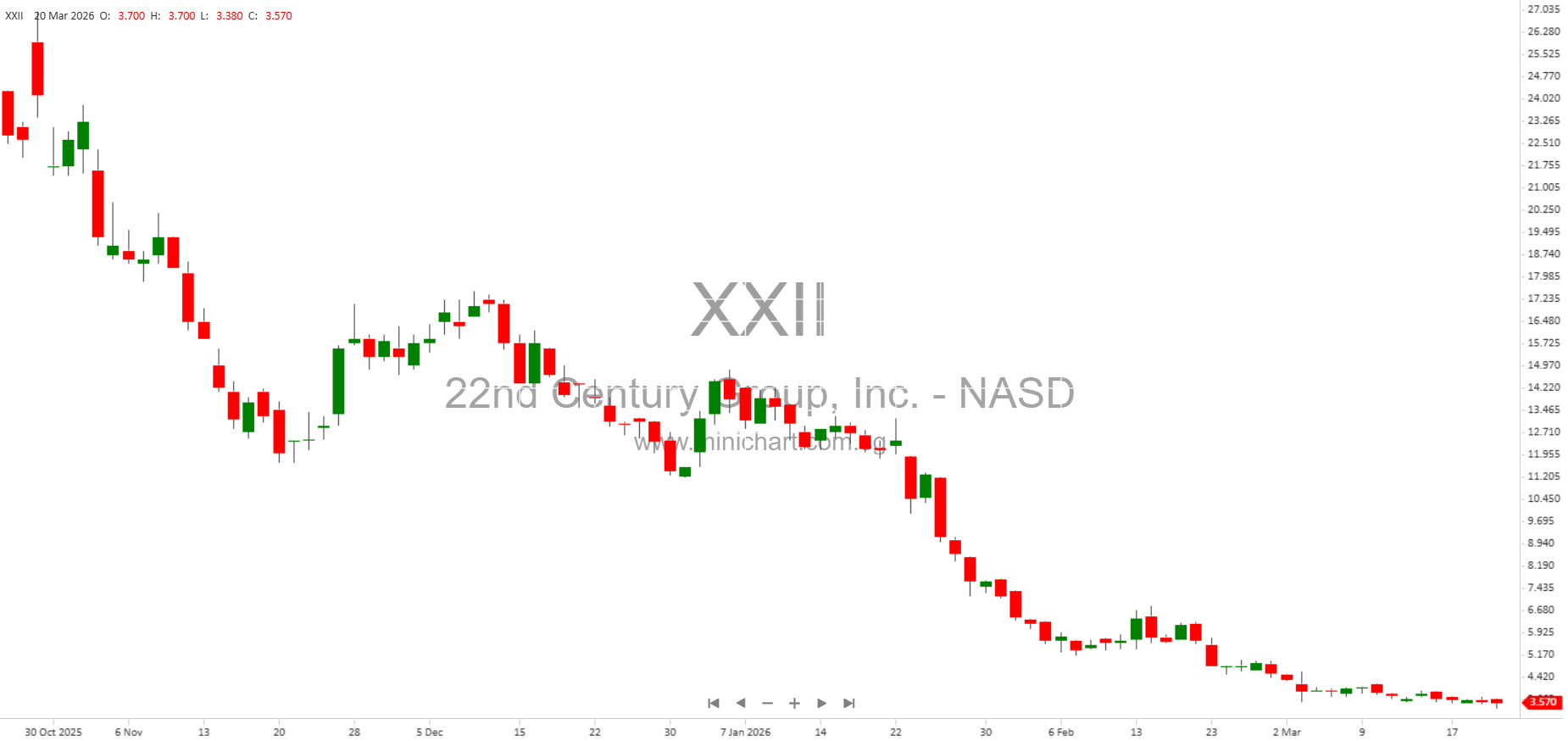 View 22nd Century Group, Inc. Historical chart here