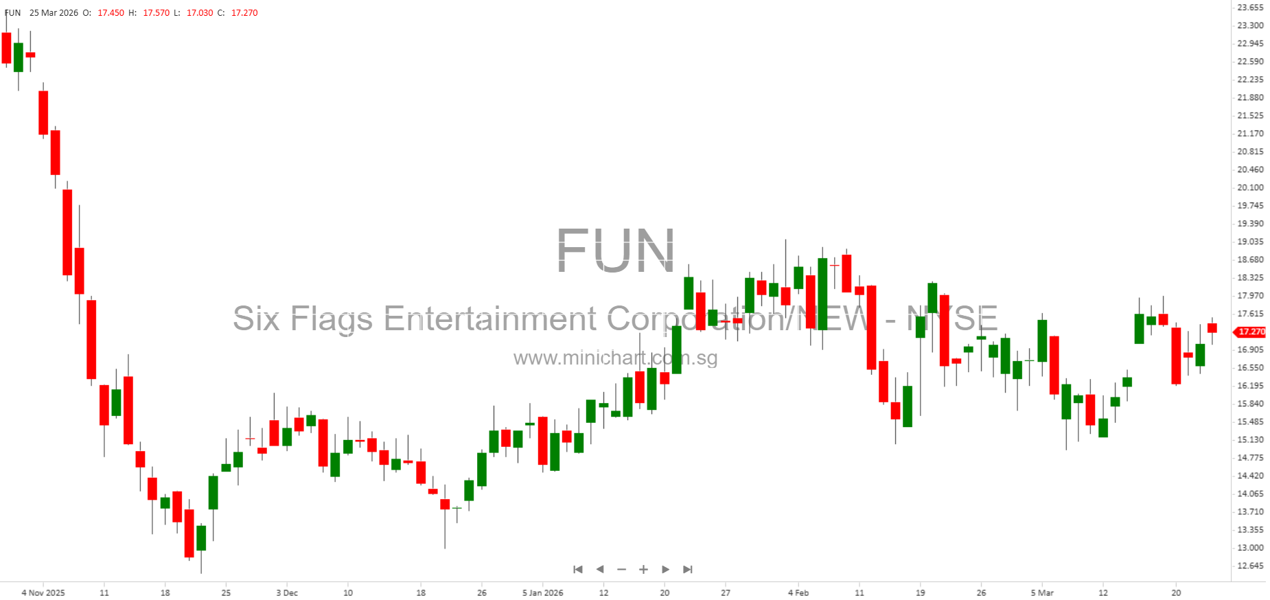 View Six Flags Entertainment Corporation/NEW Historical chart here