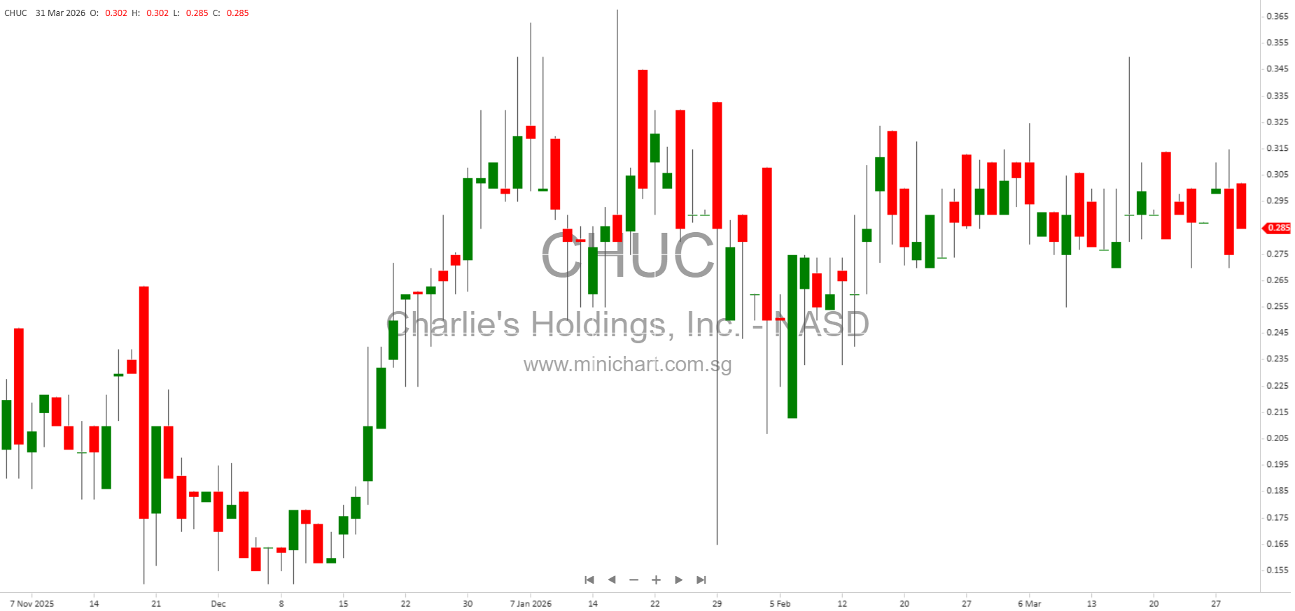 View Charlie’s Holdings, Inc. Historical chart here
