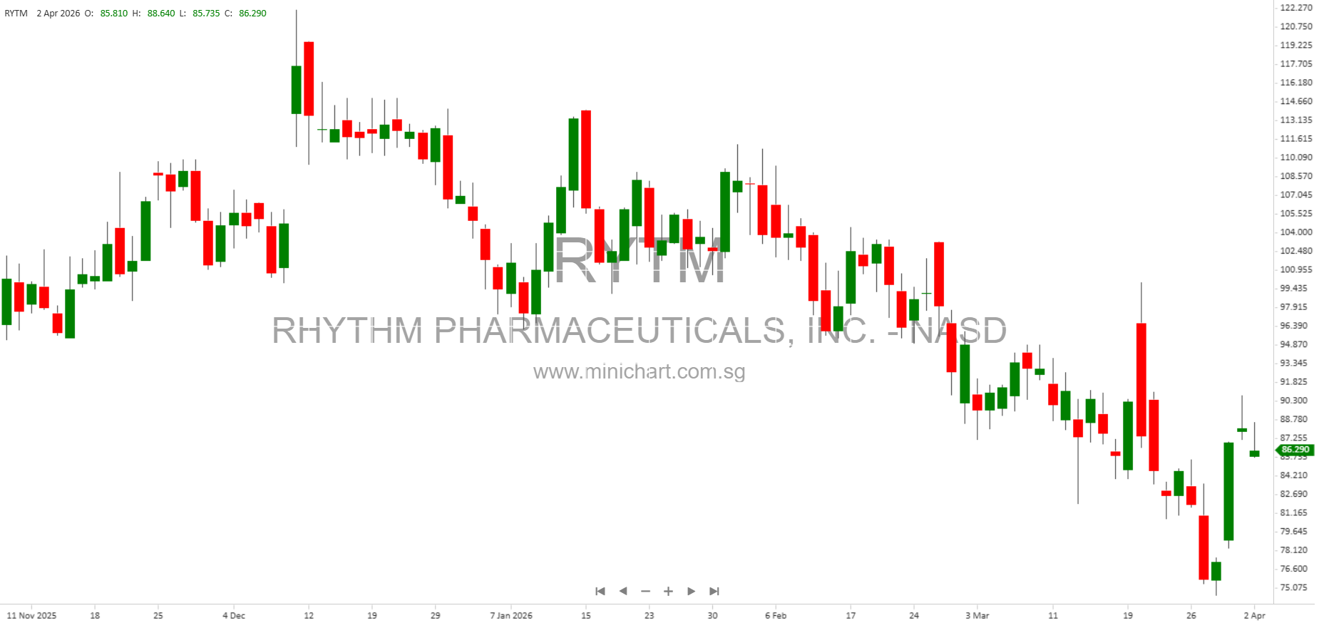 View RHYTHM PHARMACEUTICALS, INC. Historical chart here