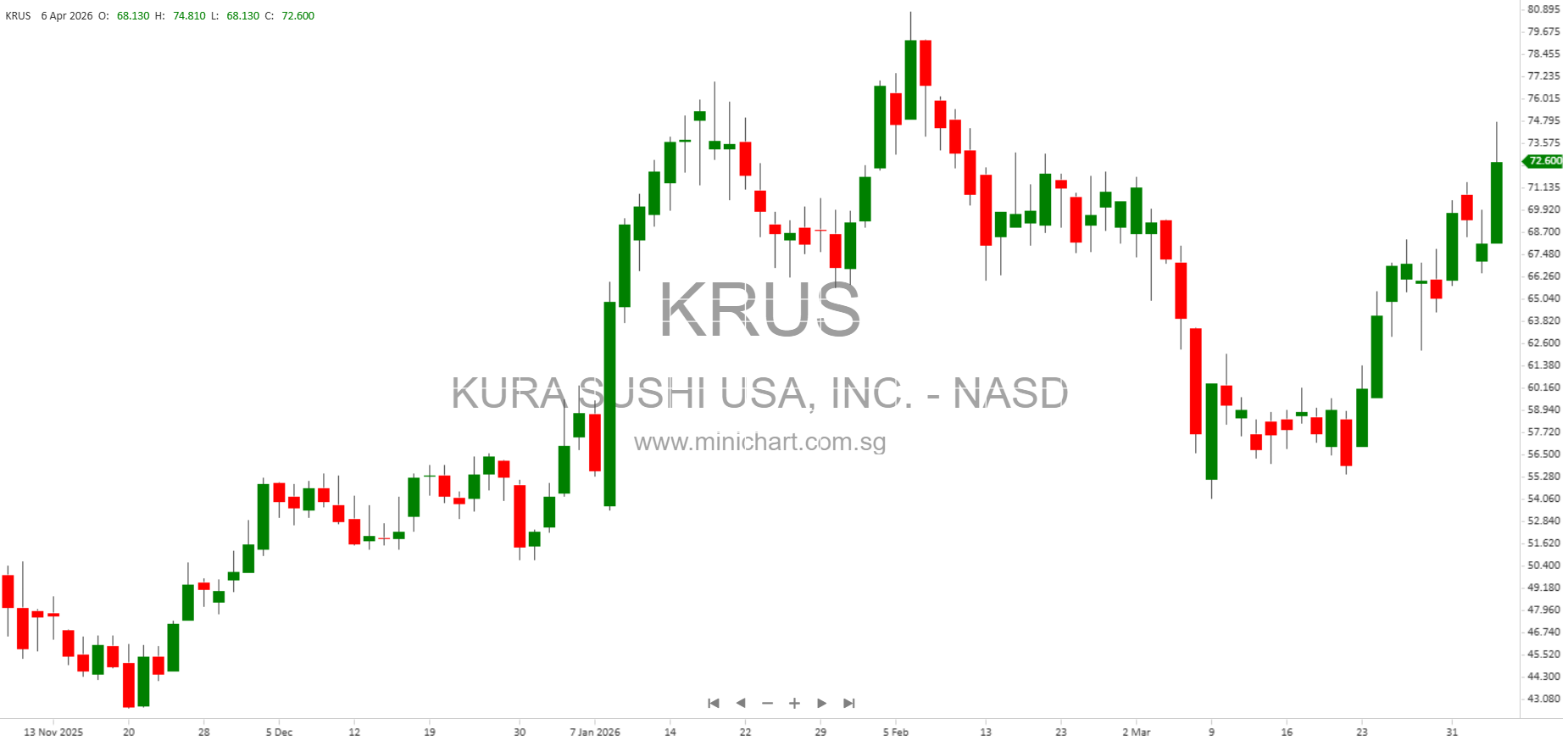 View KURA SUSHI USA, INC. Historical chart here