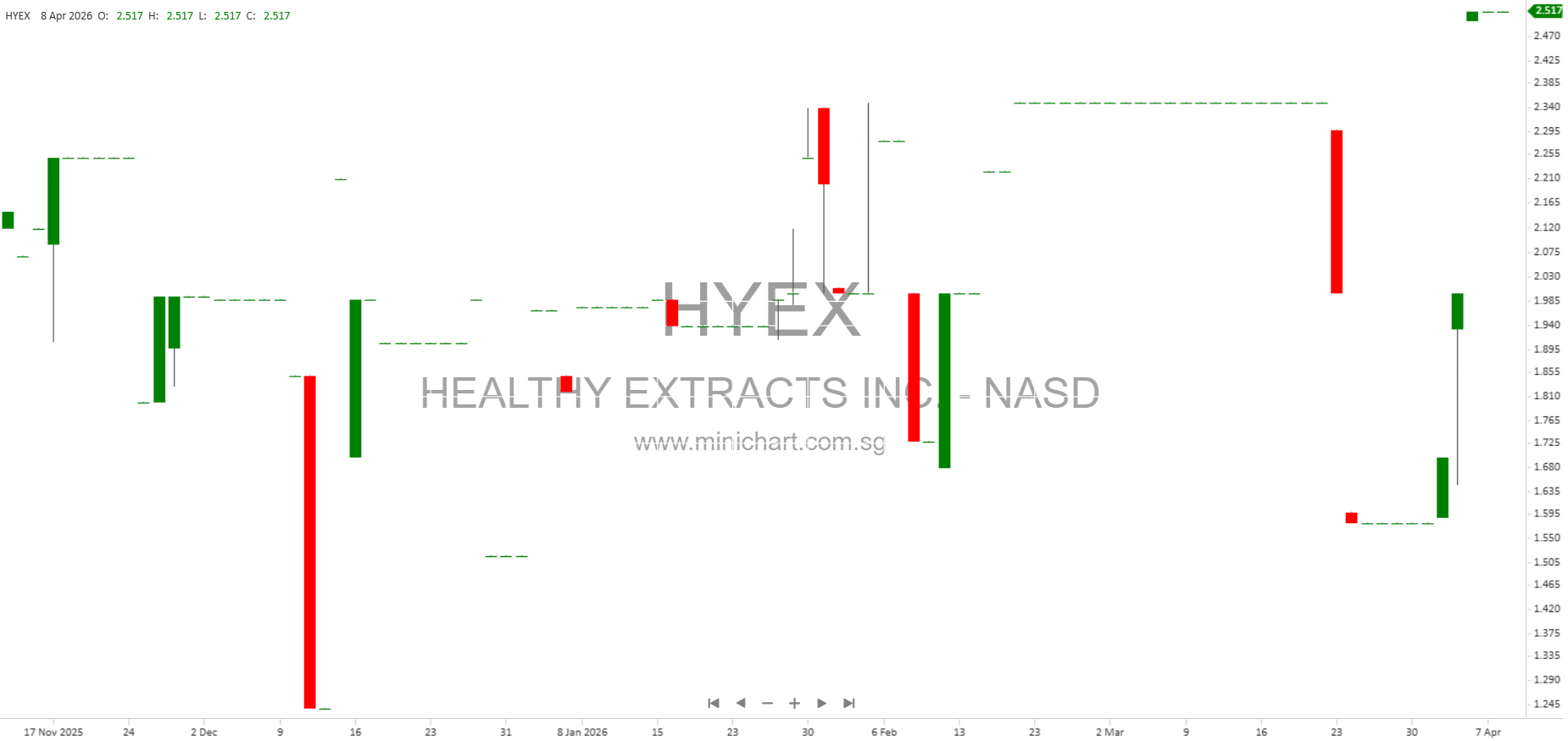 View HEALTHY EXTRACTS INC. Historical chart here