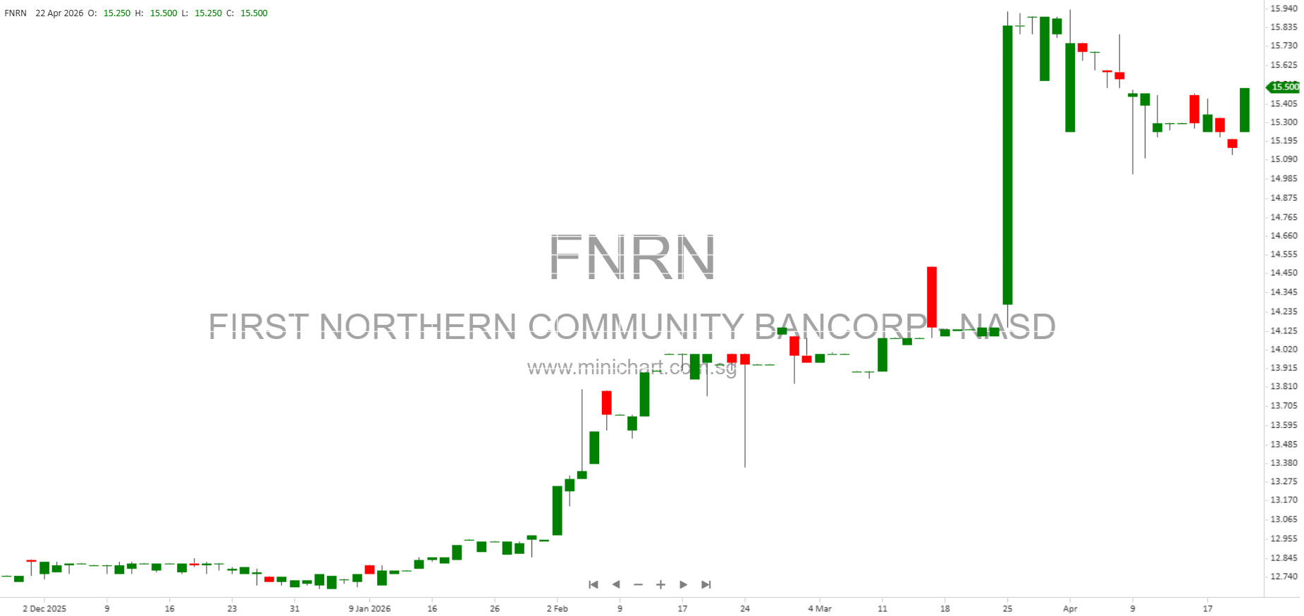 View FIRST NORTHERN COMMUNITY BANCORP Historical chart here