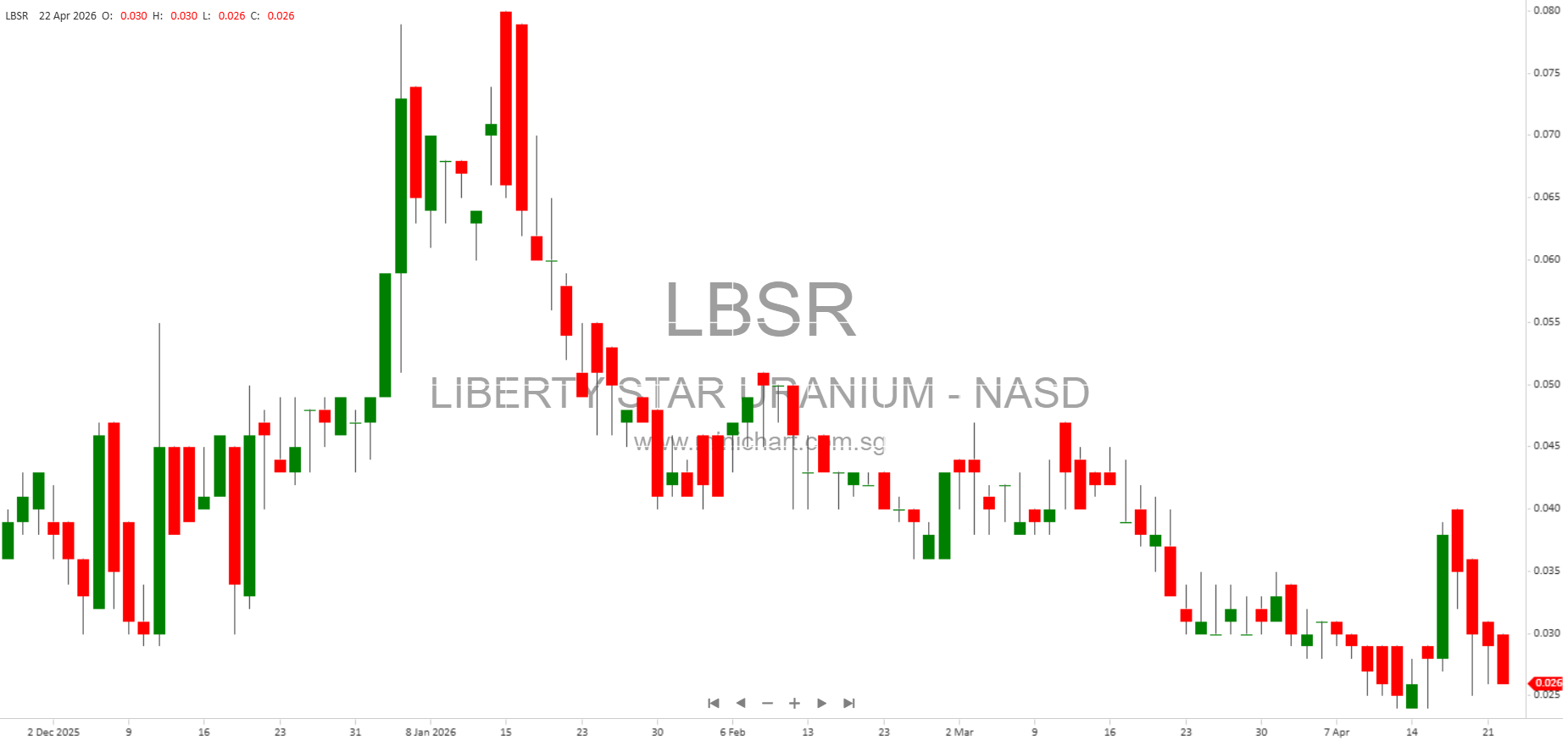 View LIBERTY STAR URANIUM & METALS CORP. Historical chart here