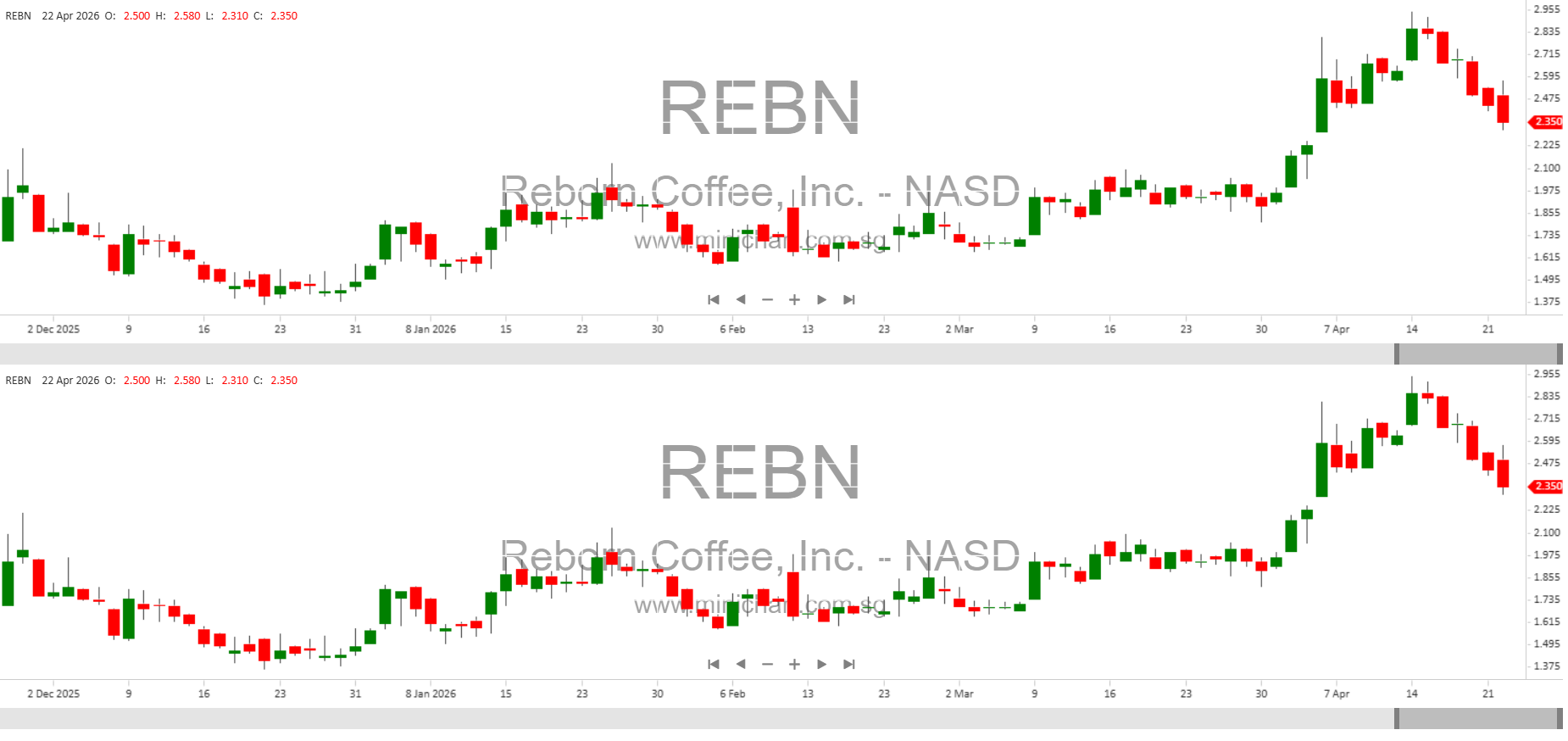 View Reborn Coffee, Inc. Historical chart here