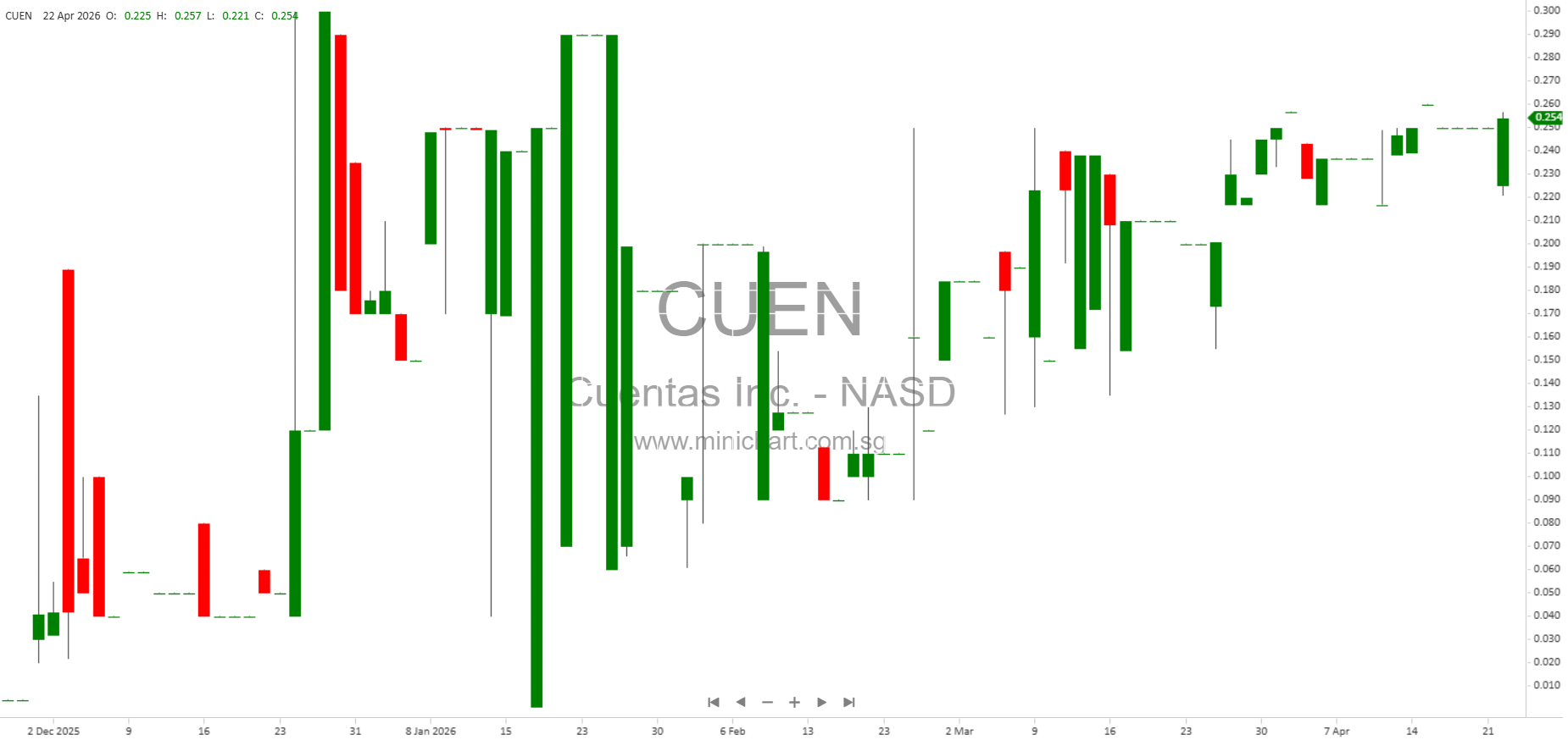 View Cuentas Inc. Historical chart here