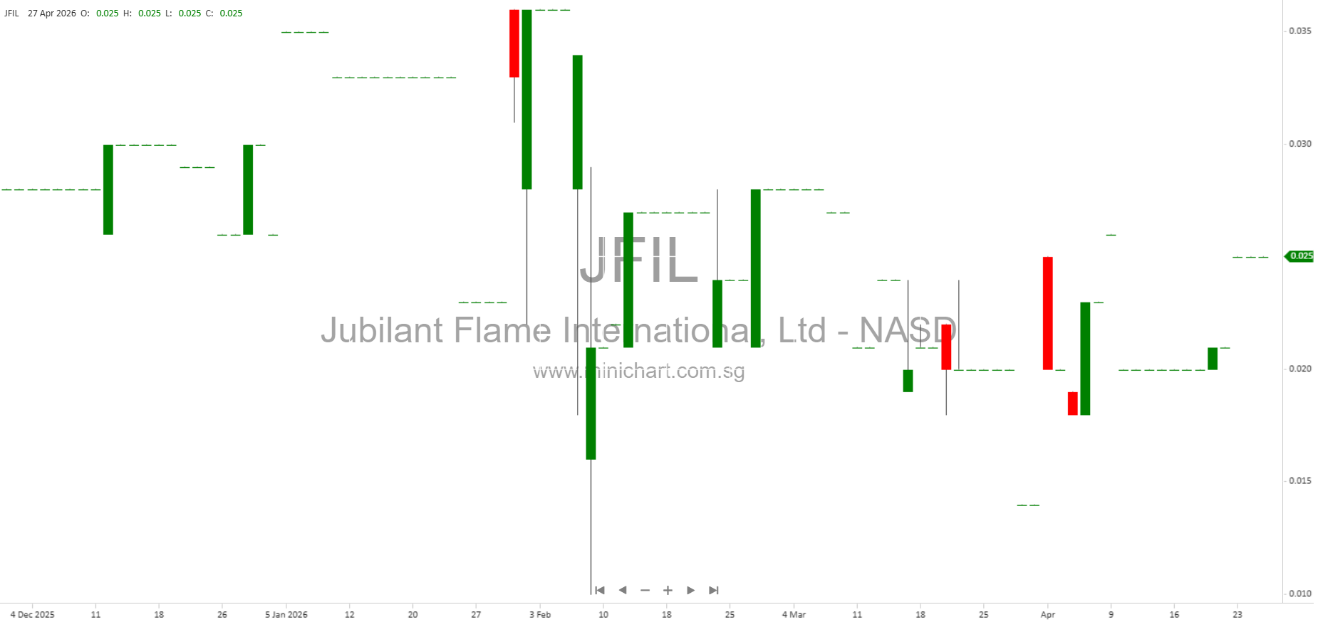 View Jubilant Flame International, Ltd Historical chart here